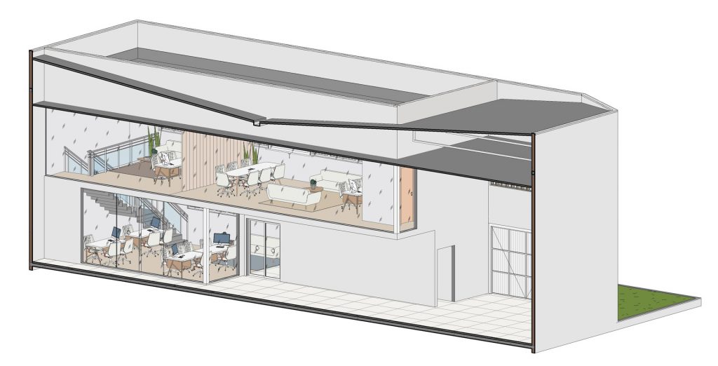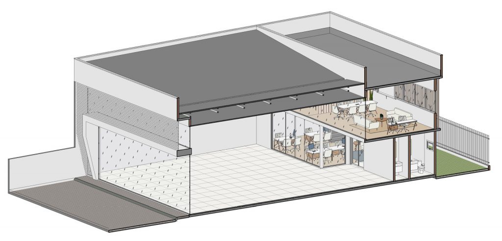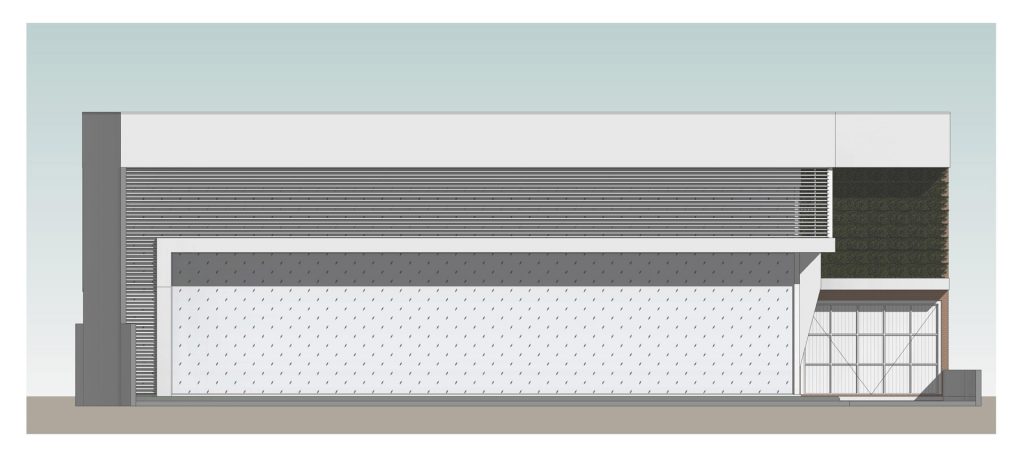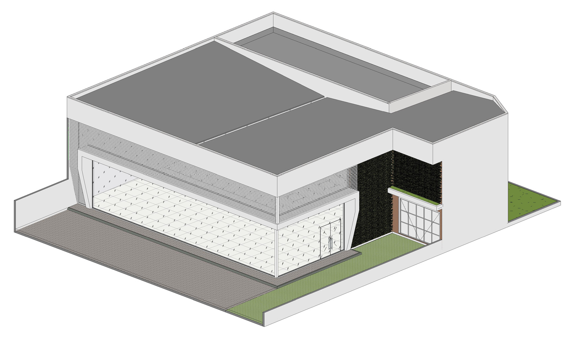 Loja automotiva com 700m² de área, com projeto arquitetônico moderno e estudo de fachada.